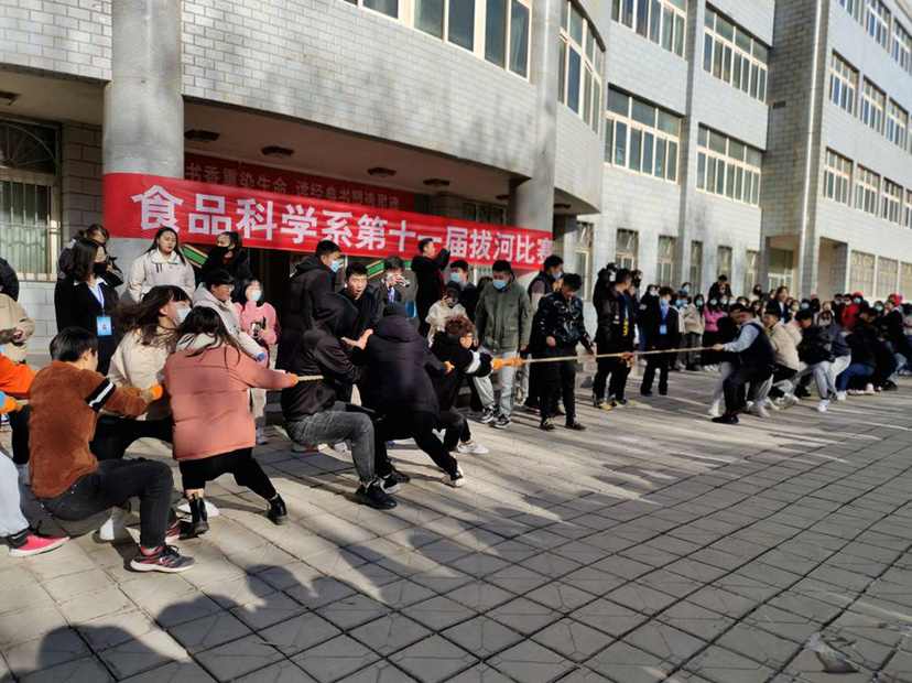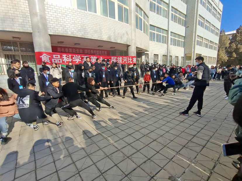 2020年11月28日至29日,食品科技学院在图书馆门前举办第十一届拔河比赛。全学院19支代表队参加了比赛。