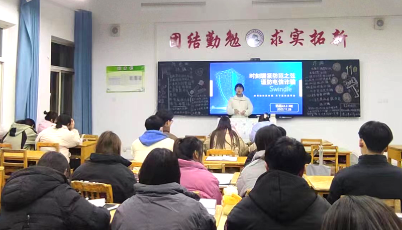 11月29日下午,辅导员沈凤为食科院在校大学生们举行了一场内容生动、形式多样的大学生防范电信网络诈骗宣讲活动。在会上,讲解了反电信诈骗的重要性和防范电信诈骗的技能,使学生对防范电信诈骗知识入耳、入脑、入心,时刻绷紧防范之弦,严防电信诈骗之害;并现场为学生讲授了安装及使用“国家反诈中心”APP的方法,同时,在宣讲会最后,举行了一场“反诈骗”的签名活动。通过此次活动,同学们进一步提升了安全意识,了解了电信网络诈骗的形式、手段和特点,掌握了识别电信网络诈骗的技巧,在今后的学习生活中会继续提高警惕,防范电信网络诈骗,真正做到校园无“诈”。