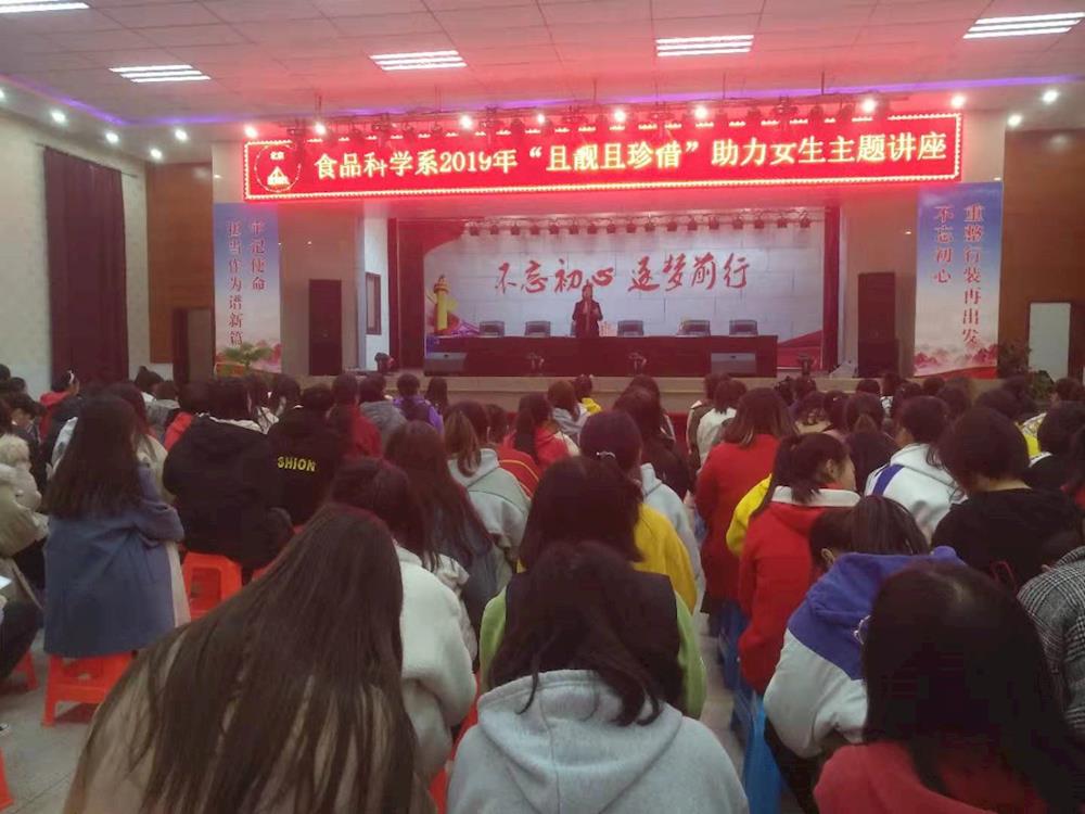 2019年11月8日,食品科学系在学院西校区大学生活动中心召开“且靓且珍惜”2019年助力女生主题座谈会,辅导员及食科系全体女生参加了座谈会。 辅导员康红霞从恋爱、安全和自强三个方面给大家谈了一些体会和方法。 讲座后康老师就同学提出的困惑作了解答并提出相关建议,讲座内容引起全系女生共鸣,取得了良好的效果。