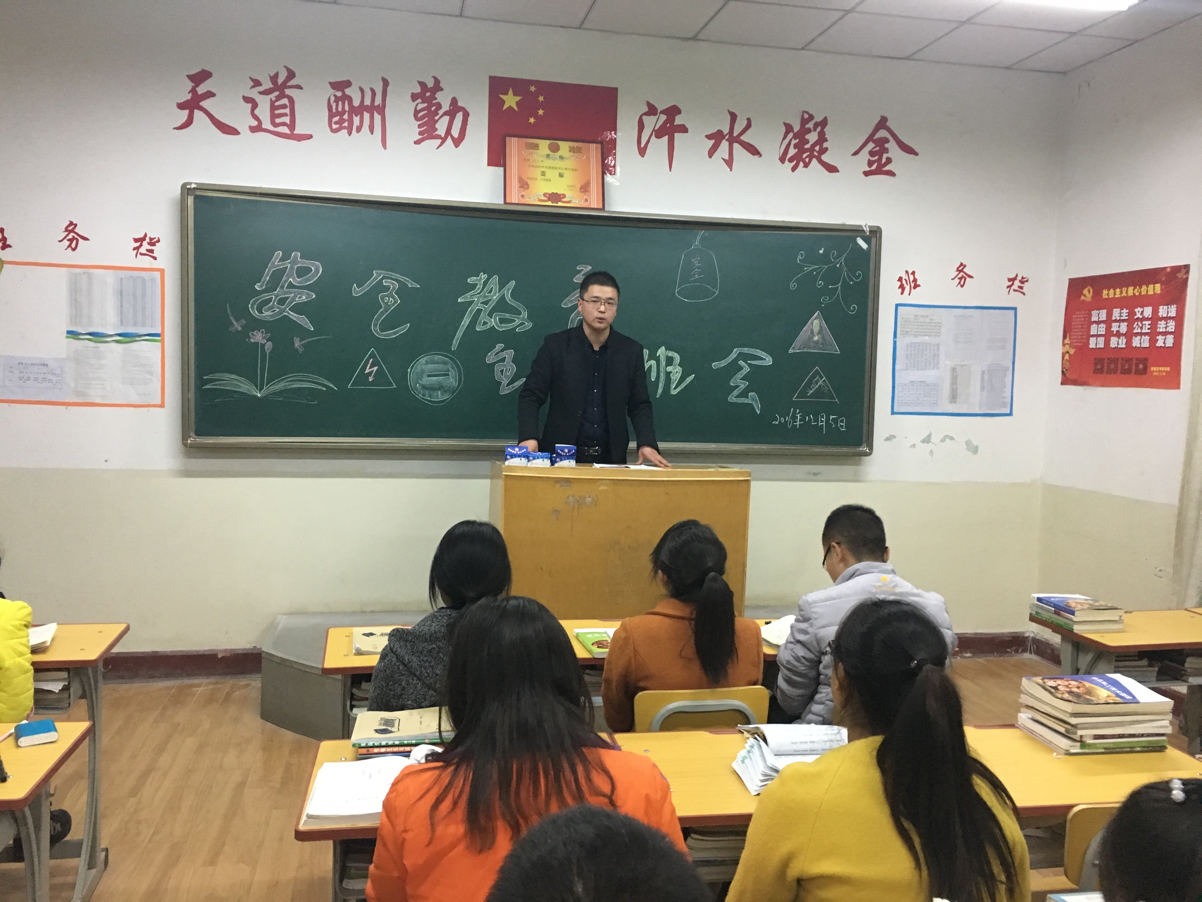 5日晚自习辅导员、班主任组织召开了安全主题教育班会。